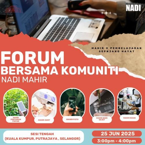Jom sertai Forum MAHIR bersama Komuniti untuk mengetahui lebih lanjut tentang Program Mahir pada pengambilan akan datang. Peserta berpeluang untuk memenangi hadiah cabutan bertuah sekiranya peserta hadir ke NADI pada hari & masa forum tersebut dilangsungkan: